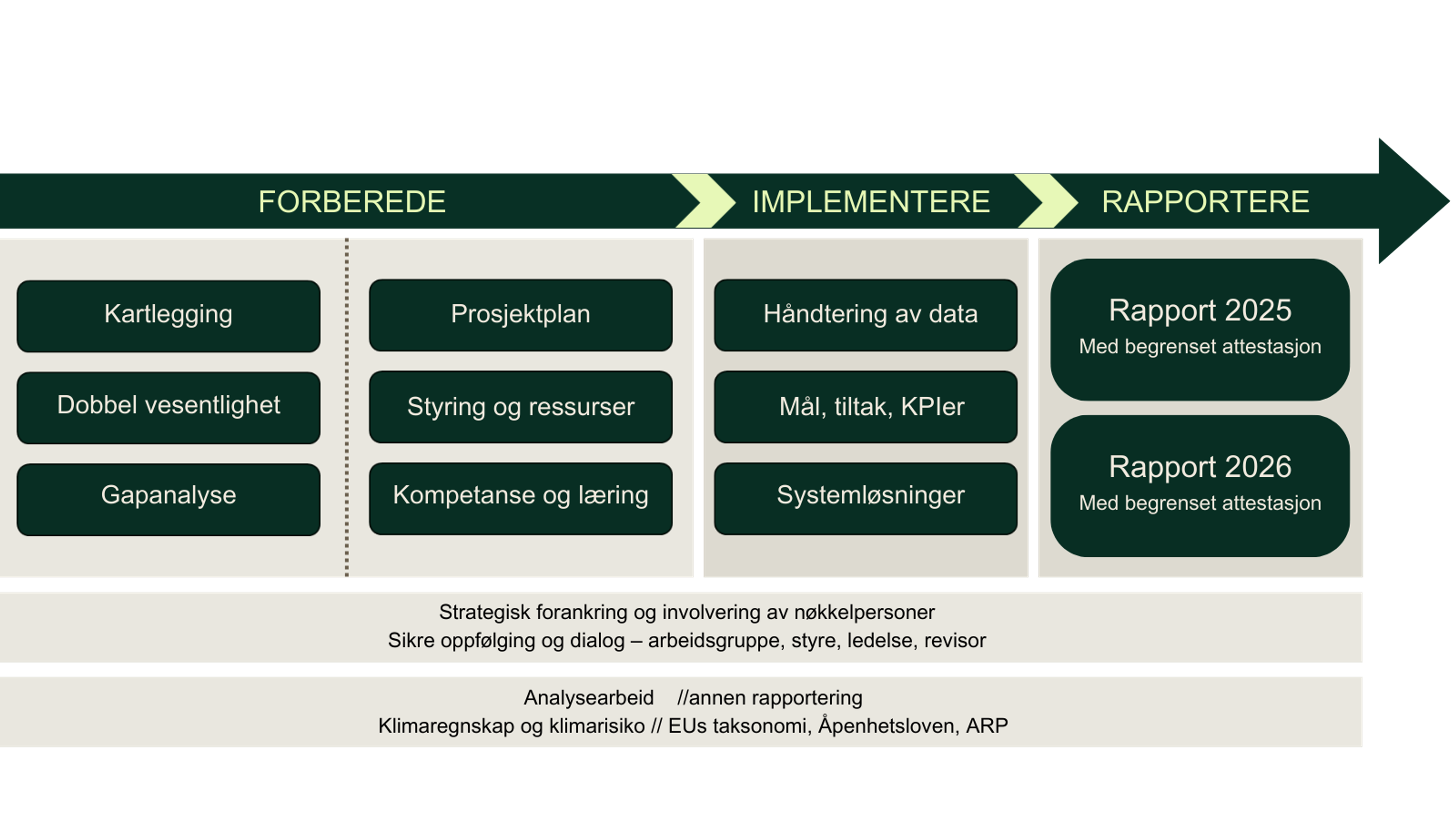 Vi kan hjelpe deg med alle fasene i CSRD-arbeidet, herunder: